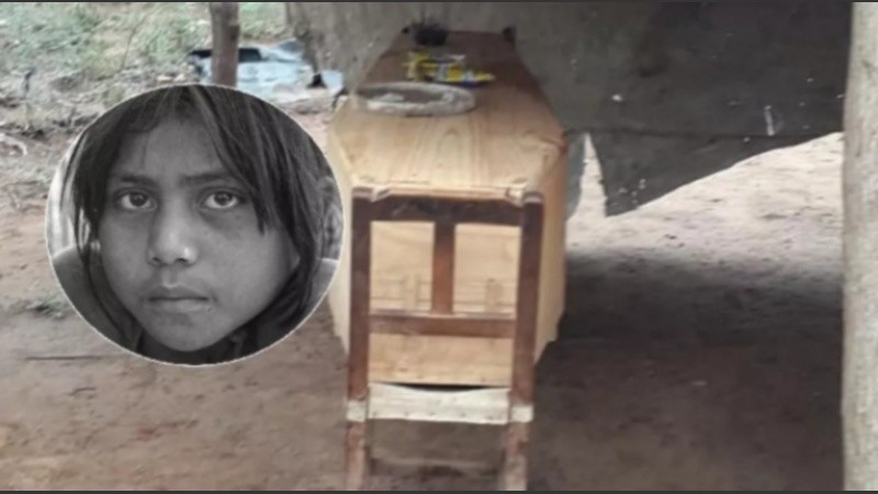 Ante las amenazas del clima debieron improvisar una carpa con lona que resguardaba el ataúd. Luego cavaron un pozo y los restos de la niña fueron enterrados en el cementerio de la comunidad.