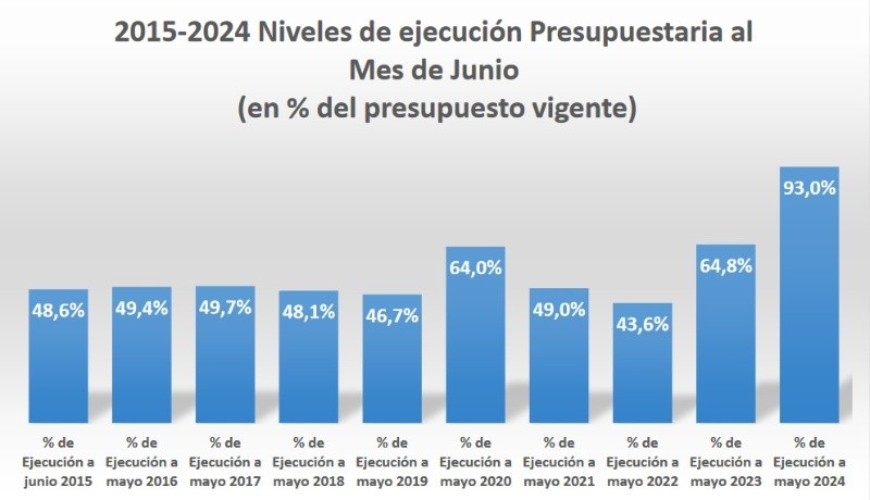 En esa línea, el informe indica que "el nivel de ejecución de las transferencias a universidades nacionales de la Administración Pública Nacional al finalizar el mes de junio del presupuesto disponible fue de 93%, superior al promedio de los años 2015-2023 (51%)".