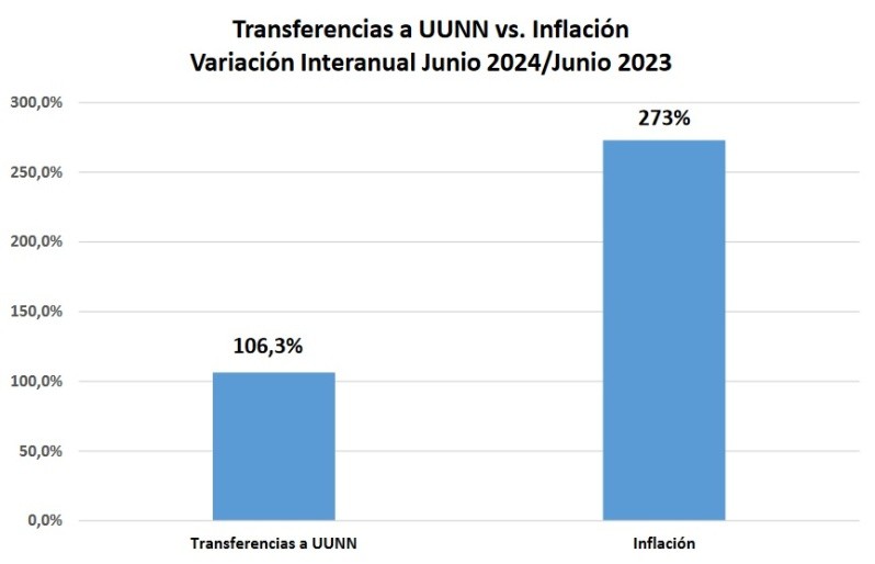 "En los primeros seis meses de 2024, las universidades nacionales recibieron del Estado 1.352.829 millones de pesos", lo que implica "un 152,8% más que lo que obtuvieron en los primeros seis meses del año pasado", precisaron.