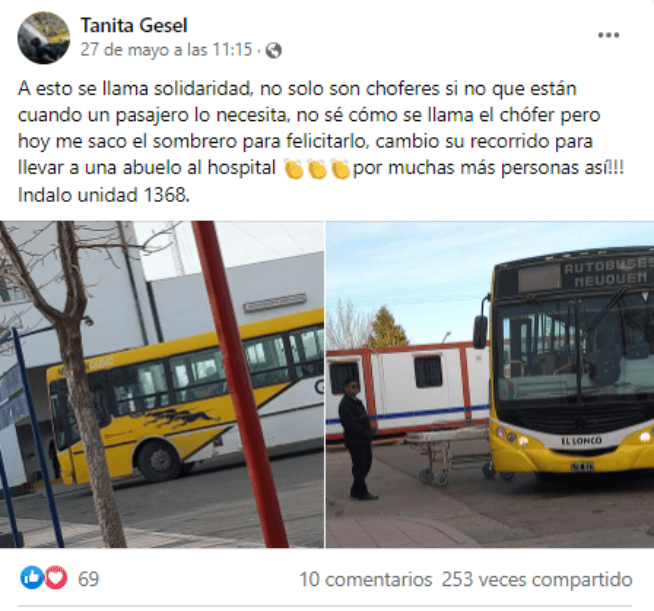 En una noble actitud, Fabio Ceballos, un chofer de la empresa Autobuses Neuquén, decidió desviarse de su recorrido para llevar hasta el hospital a un pasajero que sufría un agudo dolor por una hernia. El solidario gesto se viralizó rápidamente a través de las redes sociales.