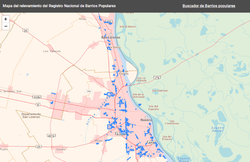 Según el relevamiento del Registro Nacional de Barrios Populares (Renabap), en Argentina existen 6.467 barrios populares (ver mapa). De ellos, 469 se ubican en Santa Fe y 175 están en el departamento Rosario (ver listado).