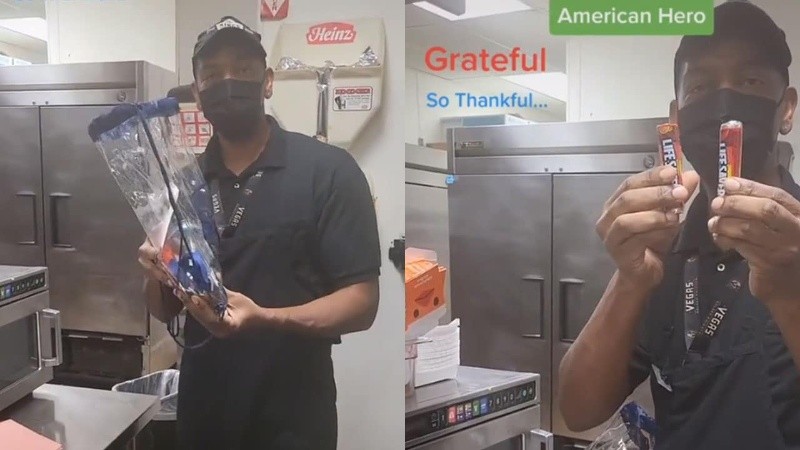 El pasado lunes, apareció en TikTok un video del empleado de la famosa hamburguesería, quien recibió un regalo de la gerencia en honor a sus 27 años en el trabajo. En el video, Ford muestra los artículos que recibió de HMS Host, la compañía que contrata para Burger King, que incluían un vaso reutilizable de Starbucks, una bolsa de chocolates, y dos paquetes de gomitas, entre otros artículos. Además, los gerentes del Burger King de Las Vegas, donde trabaja Ford, le dieron un trozo de pastel de chocolate para celebrar el hito.