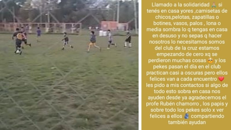Son "aproximadamente 60 chicos entre nenas y nenes que hacen fútbol infantil acá" contó, al tiempo que destacó que para poder seguir adelante son necesarias algunas cosas y es por eso que piden ayuda: "hacen falta pelotas, shores de fútbol, camisetas, botines o zapatillas para poder jugar sin romper las únicas que usan para la escuela, tazas o vasos, palos, lonas, cables de luz y alguna lámpara", enumeró.