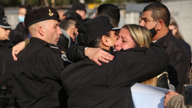 Los colegas de Sanabria, que sufrió al menos ocho disparos desde un auto a cuyos ocupantes intentaba identificar en Arijón al 400, se hicieron presentes en uniforme frente al Heca. Eran unos pocos en representación de la fuerza policial y estuvieron unos minutos antes de reanudar sus tareas.