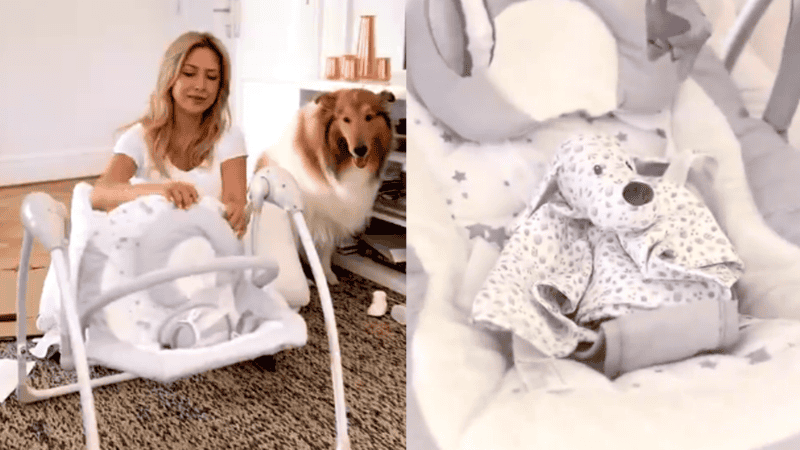 En el video se la ve vestida de blanco, sentada en el piso y armando una mecedora, mientras está acompañada de Dylan, el perro presidencial.