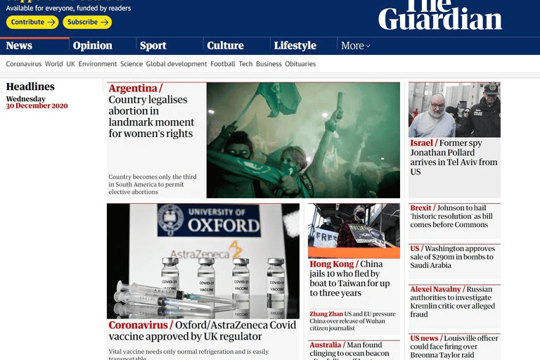 El medió británico The Guardian tituló: “Argentina legaliza el aborto en un hito histórico para los derechos de las mujeres”. Además, destacó que el país es el tercero de Sudamérica en legalizar esta práctica.