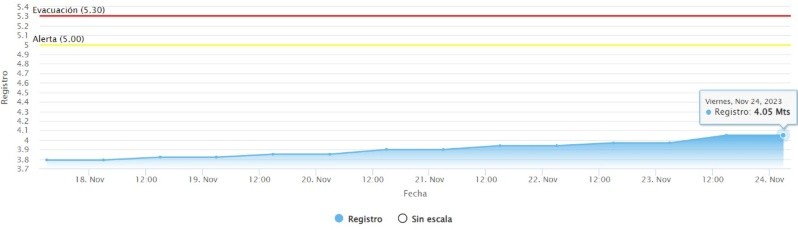 El viernes ya estaba en 4,05, mientras que el registro del sábao fue de 4,17 y este domingo, 4,19 metros.