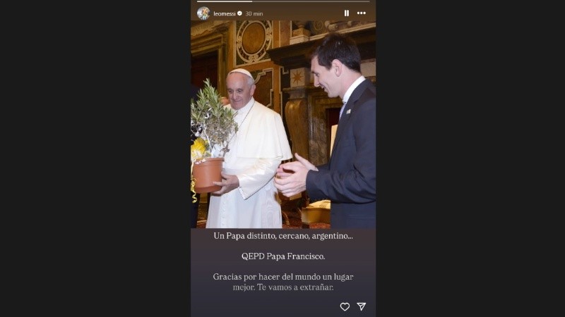 "QEPD Papa Francisco", continuó Messi. "Gracias por hacer del mundo un lugar mejor. Te vamos a extrañar", finalizó.