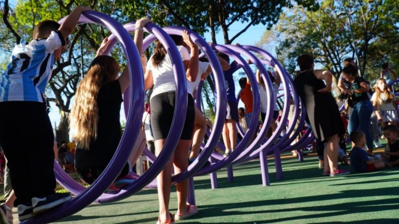 La plaza es una propuesta pensada desde las infancias de Rosario para que disfrute toda la ciudad, "un lugar para encontrarse, descubrir colores, texturas, olores, sonidos, jugar de muchas maneras, compartir, explorar y reunirse".