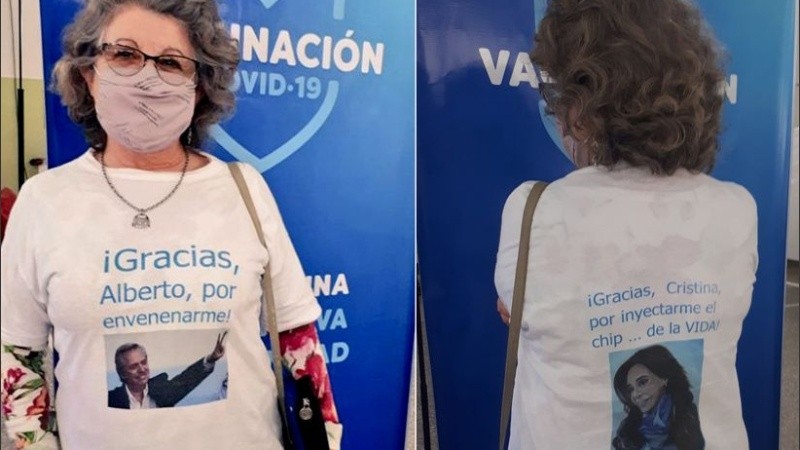Una jubilada de Neuquén recibió la segunda dosis de la vacuna Sputnik V contra el coronavirus y lo compartió en las redes sociales: lo que llamó la atención es el mensaje irónico que tenía su remera. “Gracias, Alberto, por envenenarme”, rezaba la prenda, que también contenía un mensaje de agradecimiento dirigido a la vicepresidenta, Cristina Kirchner.