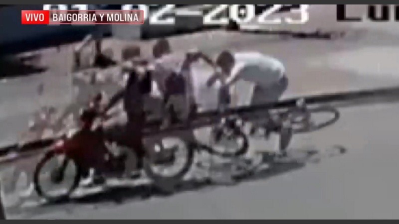 A las 13.20, según los registros fílmicos, iba por Baigorria al 1700 cuando desde atrás una dupla en moto le quitó la riñonera, donde tenía billetera, celular y tarjetas, dijo la movilera Feni Rubio, de De 12 a 14. El arrebato provocó la caída sobre el pavimento de la víctima.