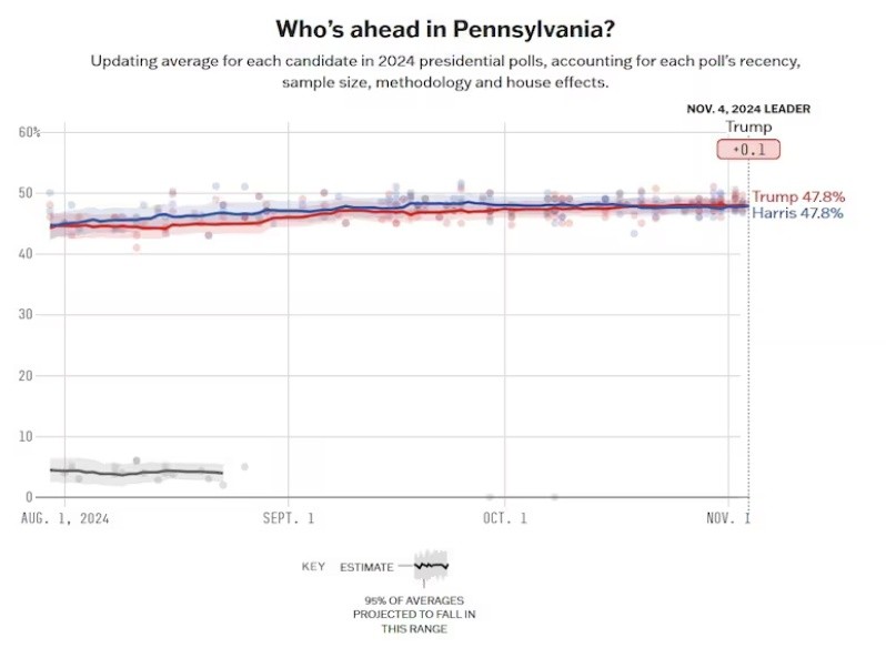 Los sondeos preliminares muestran que ninguno de los candidatos tiene una ventaja suficiente como para hacerse holgadamente con los 270 votos electorales necesarios para proclamarse ganador o ganadora, que se alinearán con lo que decidan los votantes comprendidos entre los 240 millones de estadounidenses habilitados a participar.