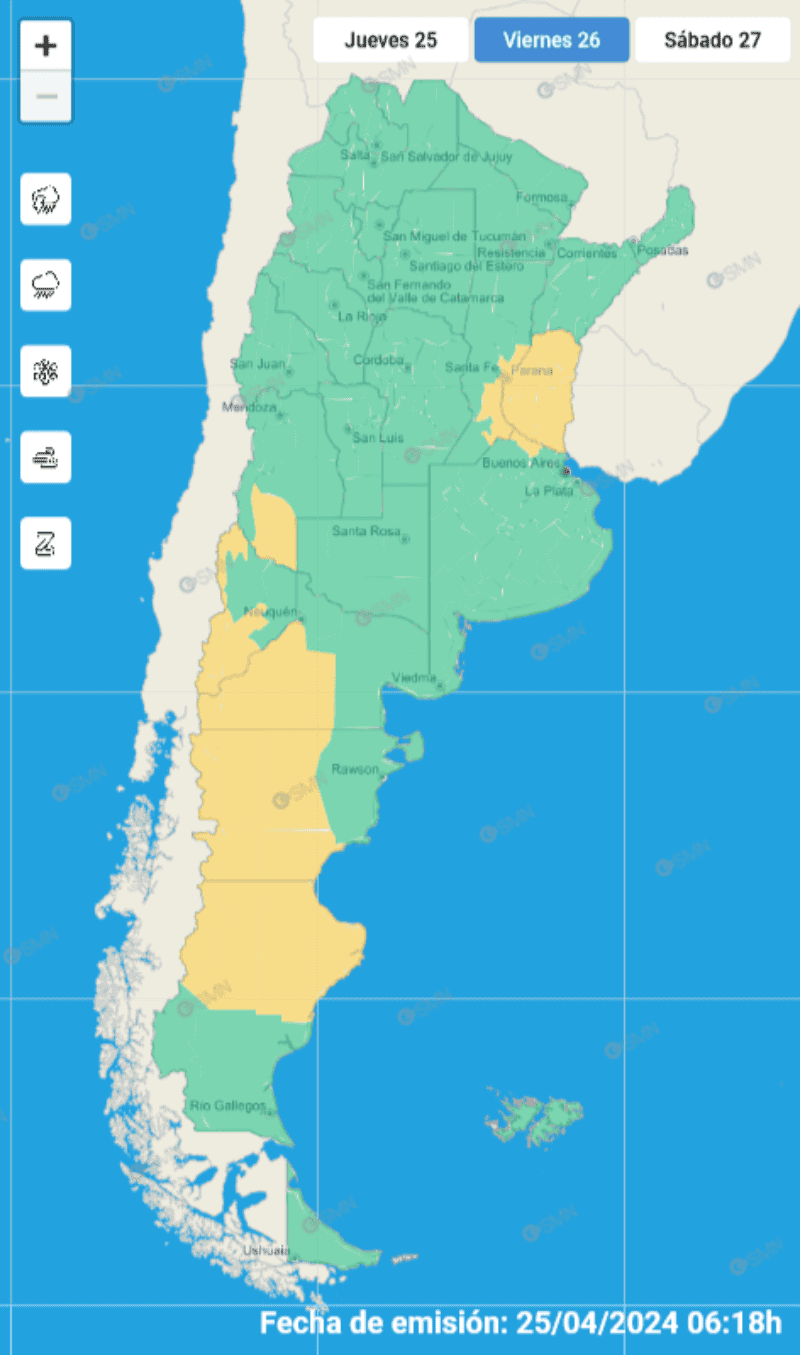 De acuerdo con el reporte, el alerta por tormenta de nivel amarillo tiene solo vigencia para la mañana del viernes cuando los fenómenos pueden ser “localmente fuertes”.