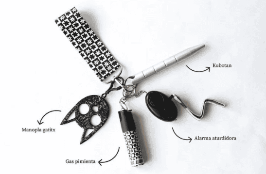 Por último Lleva llave ofrece el tercer kit más completo. A todo lo anterior se le incorpora un kubotan, un cilindro metálico de 14 cm de largo que funciona como rompe vidrio o arma de defensa y un scrunchie, es decir una colita de tela que contiene un cierre secreto para guardar cosas.