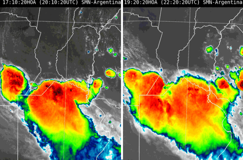 "El área será afectada por lluvias y tormentas de variada intensidad, algunas localmente fuertes, acompañadas de intensas ráfagas, ocasional caída de granizo, fuerte actividad eléctrica y fundamentalmente abundante caída de agua en cortos períodos", señaló el Servicio Meteorológico Nacional (SMN).