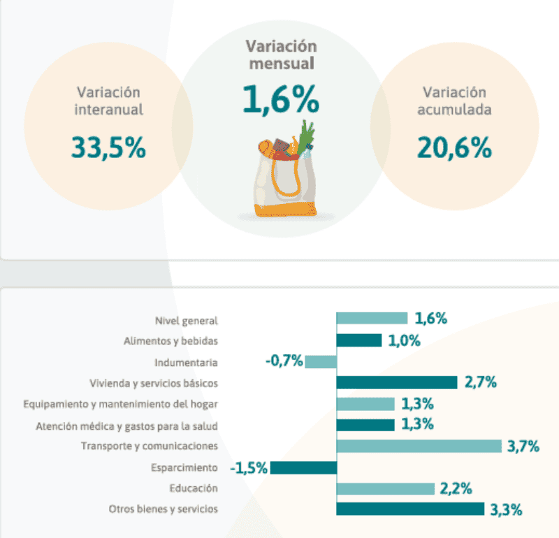 Pese a eso, el acumulado anual en Santa Fe se ubica en 20,6% mientras que a nivel nacional entre enero y agosto la inflación llegó al 19,5%.