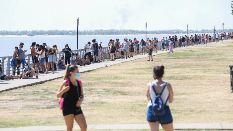 Rosario registró este miércoles cerca de 1.300 casos nuevos de coronavirus y ese repunte se reflejaba de nuevo este jueves por la mañana en las largas filas para hisoparse en los centros de testeo, a pesar del calor y del humo. El secretario de Salud municipal, Leonardo Caruana, advirtió que la mayoría de los positivos son de la nueva variante Ómicron y conminó a retomar los cuidados, sobre todo en un época de mucha socialización por el Año Nuevo.