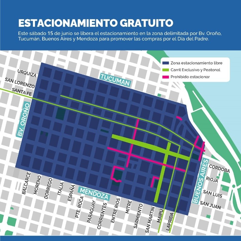 Para acompañar la iniciativa, el municipio dispuso también que el estacionamiento sea gratuito en la zona comprendida entre Oroño, Tucumán, Buenos Aires y Mendoza.