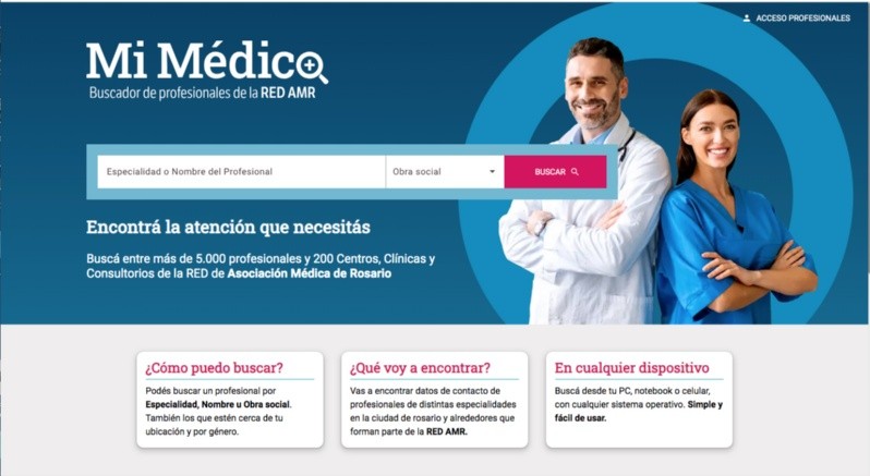 La Asociación Médica de Rosario (AMR) conmemora este lunes 12 de mayo su 93° aniversario, con el lanzamiento oficial de “Mi médico”, www.mimedico.amr.org.ar la nueva plataforma gratuita, que permitirá a los pacientes buscar y localizar, de manera rápida y sencilla, a los más de 5 mil profesionales de la Red AMR; identificando su nombre, especialidad y obra social, para luego filtrar los resultados por género y cercanía en Rosario y el Gran Rosario.