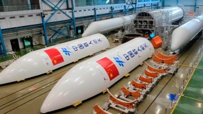 El cohete Long March 5B, construido por China para enviar al espacio los módulos de su estación espacial.