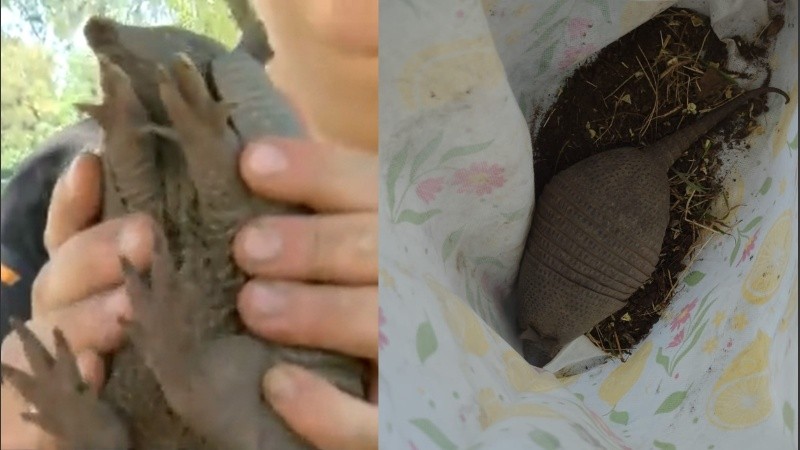 "Llamamos a la sección Ecológica (de la Policía), pero nadie me atendió y el animal está en peligro", dijo la mujer que encontró el armadillo, cuando paseaba con su mascota por la zona de Ex Batallón al 121. Fue el perro quien lo detectó.
