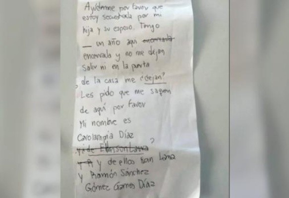 Al momento de recibir el pinchazo, le entregó a la enfermera una carta escrita por ella en la que pedía auxilio. “Ayúdenme por favor, que estoy secuestrada por mi hija y su esposo”, decía.