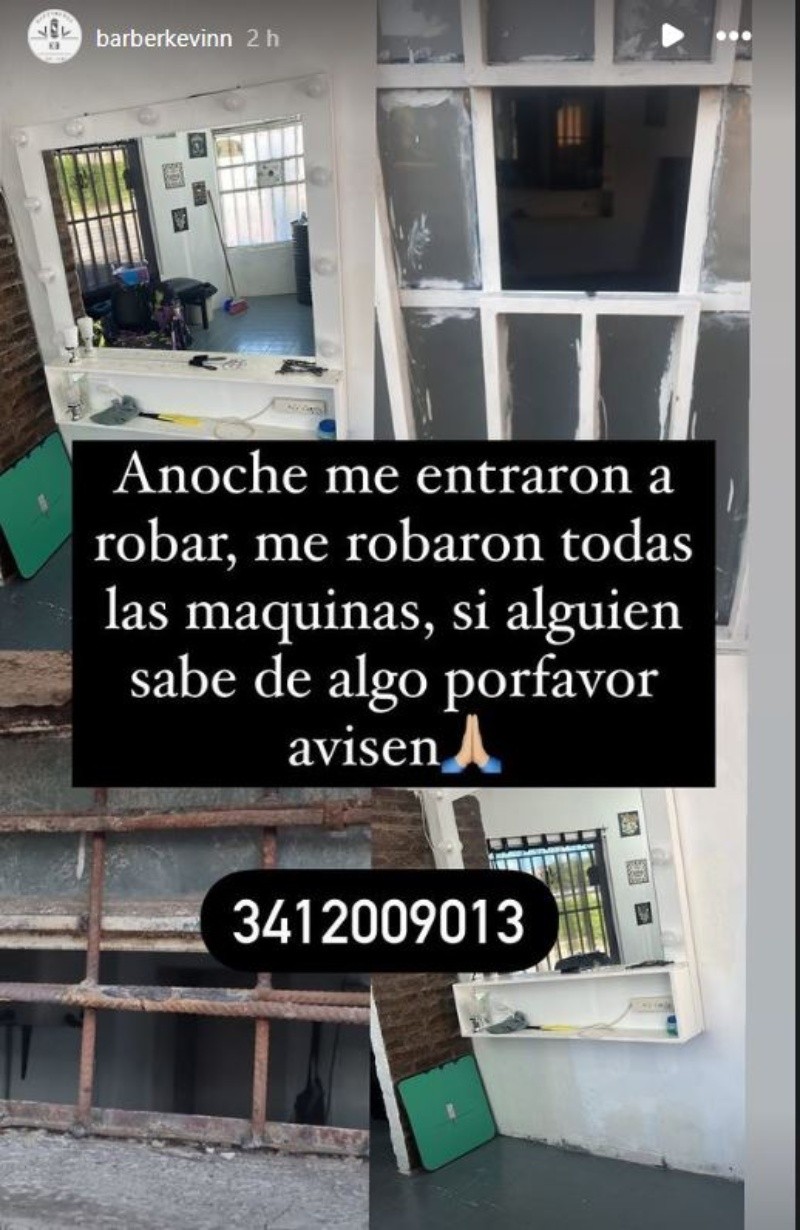 “Un vecino escuchó ruidos fuertes alrededor de las 2, prendieron la alarma vecinal y los ladrones se fueron, pero ya habían robado las máquinas”. Según enumeró Kevin, los ladrones se hicieron de tres máquinas de corte, esenciales para el funcionamiento de la barbería que lleva su nombre.