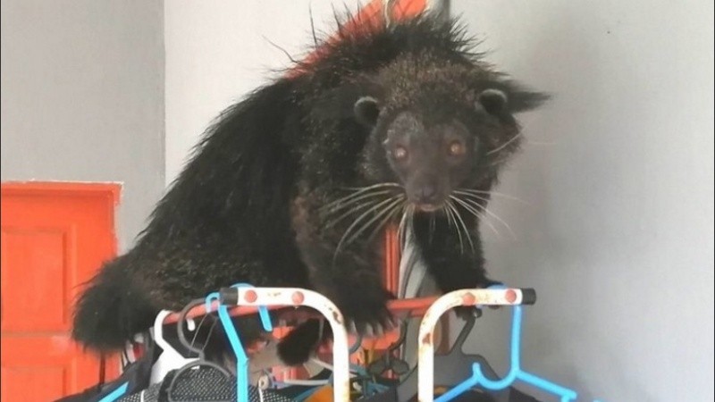 El binturong es una especie vulnerable que raramente se deja ver en zonas urbanas. Se trata de un omnívoro único en su especie.