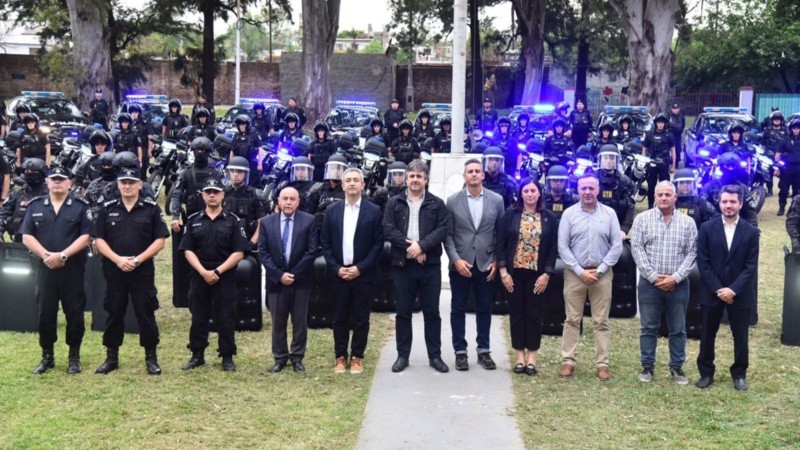 Un total de 100 motos, 43 autos equipados y conjuntos antidisturbios para dotar de más recursos policiales al personal de la Unidad Regional II fueron entregados este miércoles en Rosario.