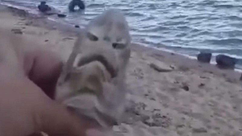 "¿Qué especie es ésta? ¿Es un tiburón o qué?", se escucha al hombre decir mientras filma.