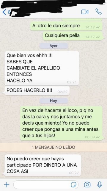 “¡Qué bien vos, eh! ¿Sabés qué? Cambiate el apellido entonces. Hacelo ya”, le escribe el Pájaro.