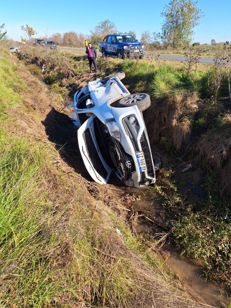 Ambos vehículos, ya descontrolados, dieron varios trompos y fueron a parar a la profunda zanja lateral.