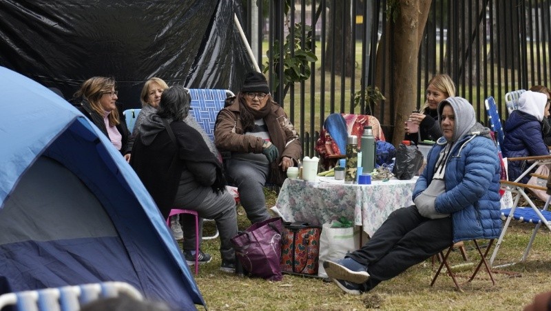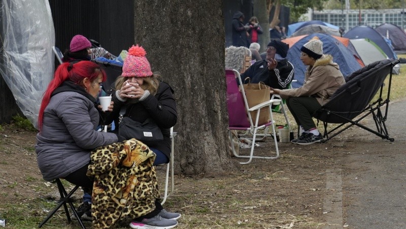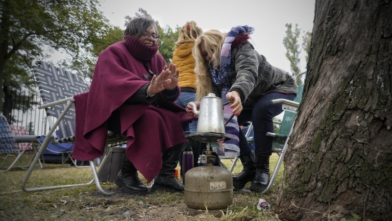 Algunos hacían fogatitas. Otros calentaban en garrafas el agua para un mate o un café. Todos estaban emponchados. Los seguidores de Leda Bergonzi, la mujer a la que le atribuyen sanaciones, acampaban este lunes en la ex Rural del Parque Independencia para acceder lo más rápido posible al encuentro espiritual previsto para el martes, a pesar de que se repartieron previamente las entradas.
