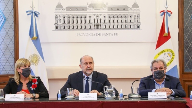 El gobernador Omar Perotti y la vicegobernadora Alejandra Rodenas encabezaron este miércoles una extensa reunión de casi 5 horas con legisladores de todos los bloques políticos e intendentes para abordar las políticas públicas sobre seguridad en la provincia.