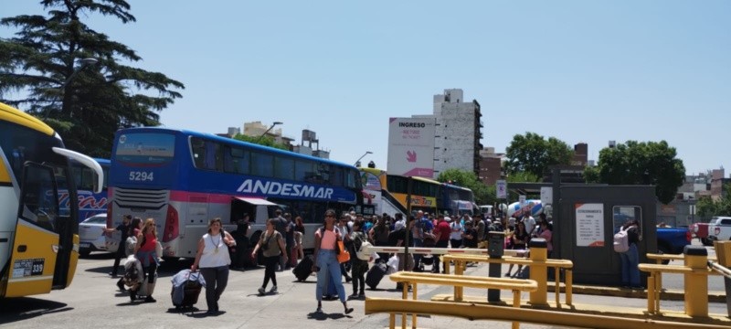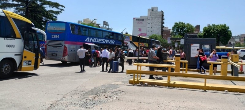 Antes de que se habilite el ingreso, gran cantidad de colectivos aguardó afuera de la estación, en el acceso por calle Constitución. Frente a la imposibilidad de abordar los servicios dentro del predio, hubo pasajeros que subieron y bajaron en esa zona.