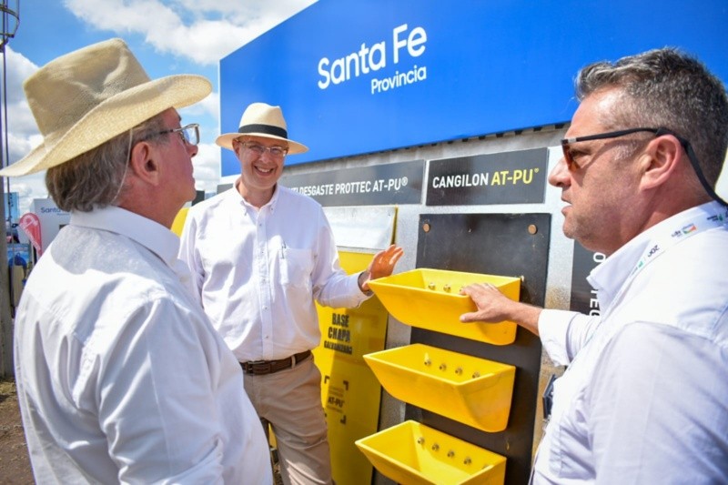 En tanto, el integrante de la pyme Tecno Campo ubicada en San Jerónimo Norte, Rodrigo Oggier, afirmó: "Es la primera vez que participamos de Expoagro. Estamos presentando nuestra máquina acondicionadora de suelos que ayuda al productor a combatir la maleza y preparar la tierra para la siembra. Nuestra empresa tiene más de treinta años de trayectoria en la fabricación de maquinaria agrícola, y en esta oportunidad, como primera experiencia, estamos muy satisfechos. Pudimos vincularnos con nuevos clientes de todo el país. Quiero agradecer por el trabajo que realizó la Provincia para que estemos hoy acá”.