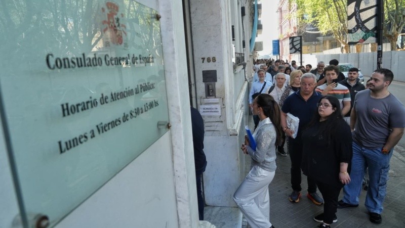 Una multitud se agrupó este viernes temprano alrededor del Consulado de España en Rosario, ubicado en Santa Fe al 700. Decenas de personas que viven en la ciudad y provenientes de otras provincias se acercaron para tramitar su nacionalidad española.