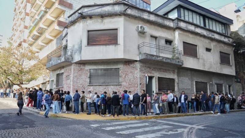 Rosario3 registró la llamativa postal que brindaban cientos de personas en una fila extensa, que daba la vuelta manzana frente a la plaza 25 de Mayo.