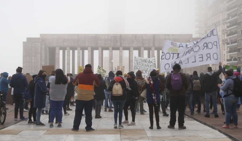 Entre los que llegaron al Monumento estaban también los familiares de Franco Ariel Hueso, un joven de Ibarlucea asesinado hace días cerca de Roldán, en un crimen mafioso en el que se sospecha que pudo haber participación de policías.
