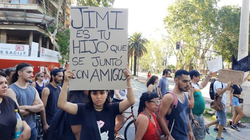 "Justicia por Jimi, "Jimi presente, ahora y siempre", "Todos somos Jimi" o "Mafia asesina" fueron algunas de las frases que se leyeron o escucharon a lo largo de la manifestación en el parque Independencia, entre rostros tristes y con lágrimas.