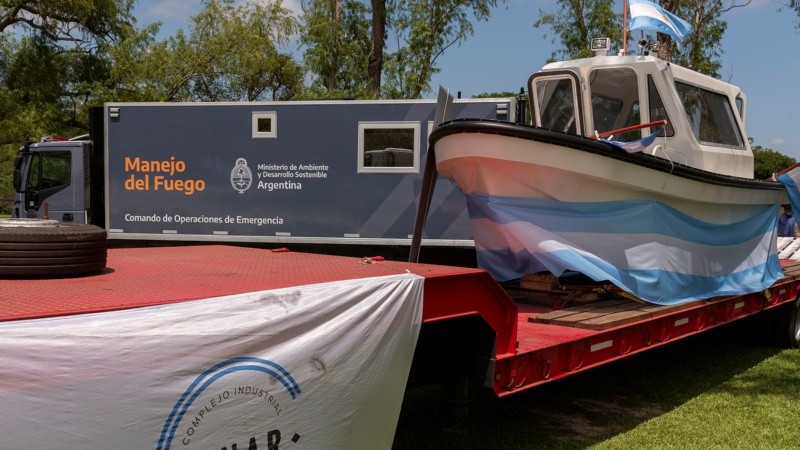 El faltazo, acá, no se entiende. El despliegue es grande. Además de la torre con las cámaras, cuya cinta se cortará en breve, está el camión especial que se usará como “Comando de Operaciones de Emergencia” para trasladarse hasta los incendios más grandes y también una de las cinco lanchas nuevas con capacidad para ocho brigadistas.