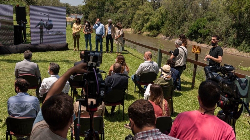 El ruido viene de lejos, como una promesa. El motor y el taka-taka de las hélices invaden la paz del Parque Nacional Pre Delta en Diamante, Entre Ríos. Acá hay sillas vacías, micrófonos a la espera y tres pantallas gigantes que promocionan la Red de Faros de Conservación del humedal pero falta el ministro de Medio Ambiente de la Nación, Juan Cabandié.