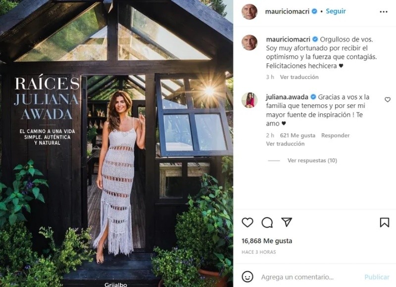 Para acompañarla en la felicidad, estuvo presente su marido, el expresidente Mauricio Macri, quien le dedicó unas sentidas palabras a través de sus redes sociales. Junto a una foto de la portada del libro, escribió: “Orgulloso de vos. Soy muy afortunado por recibir el optimismo y la fuerza que contagias. Felicitaciones hechicera”.