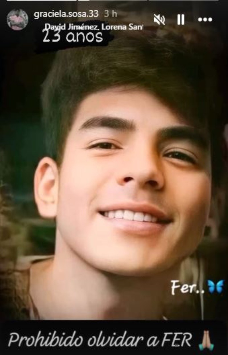 Luego, en sus historias, la mujer subió otra imagen del rostro de su hijo con el número 23 y escribió: "Prohibido olvidar a Fer".