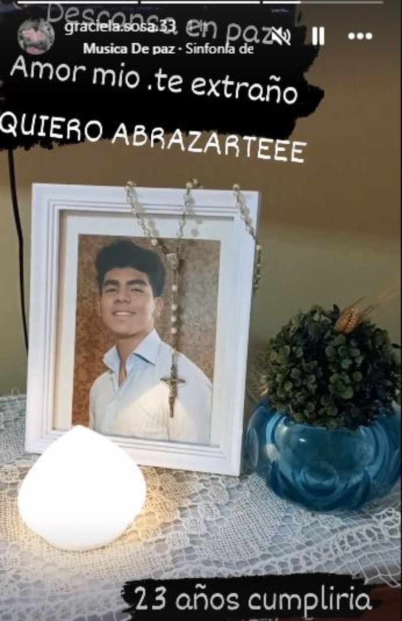 Finalmente, Graciela mostró el altar que armó en su casa para recordar a Fernando. En el video se observa un retrato con una foto del joven, un rosario blanco, una luz y una planta pequeña. Alli señaló: "Descansa en paz amor mío. Te extraño. Quiero abrazarte".