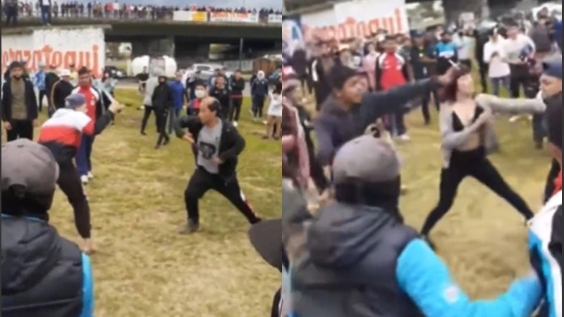 Vecinos y comerciantes quedaron atónitos ante semejante cruce y lograron filar el video de la escena. En las imágenes que rápidamente se viralizaron en redes sociales, se puede ver cómo dos adolescentes se enfrentan “a duelo” con largas cuchillas, rodeados de otros tantos que agitaban el enfrentamiento.