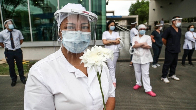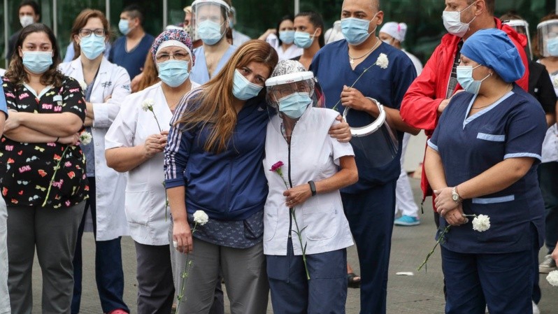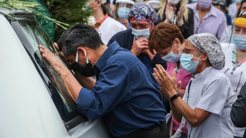 Una muchedumbre se reunió esta mañana para despedir los restos de Marleni Monzón, la enfermera de 52 años que murió este domingo por coronavirus. Sus compañeros del Hospital de Emergencias Clemente Álvarez (Heca) le brindaron un cerrado aplauso al cortejo fúnebre que pasó por el lugar con sus restos.