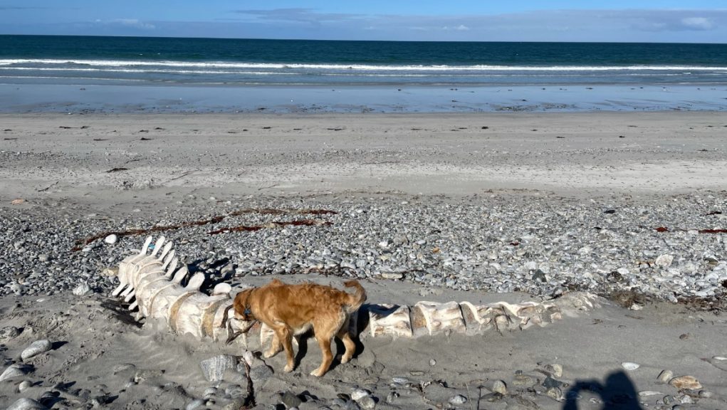 El descubrimiento del esqueleto se dio cuando la pareja paseaba con su perro, ella contó: "Era difícil saber cuánto mide, ya que es curvo y no recto, pero creemos que son unos seis metros". Y aseguró que "Nunca antes habíamos visto algo así en una playa. Ha estado allí durante un año, no fuimos las primeras personas en verlo".