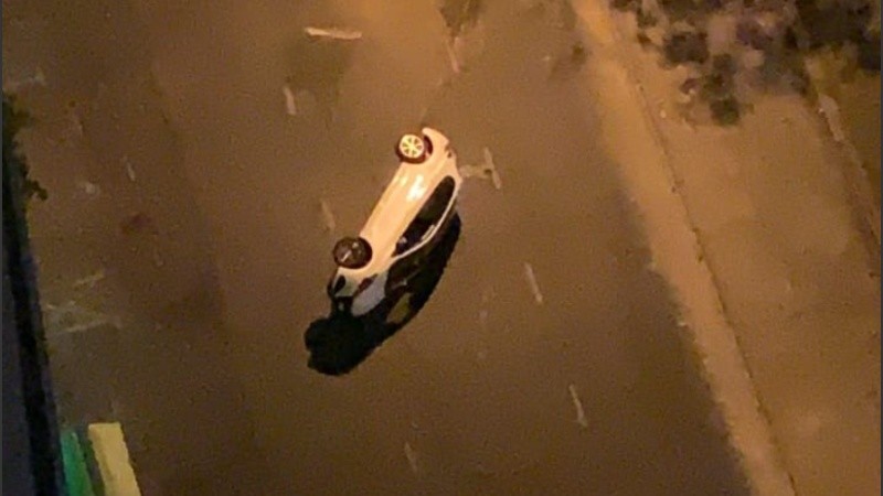 Un auto volcó este domingo por la noche en el centro de Rosario tras ser chocado. Era un Peugeot 208 blanco y lo embistieron por atrás.