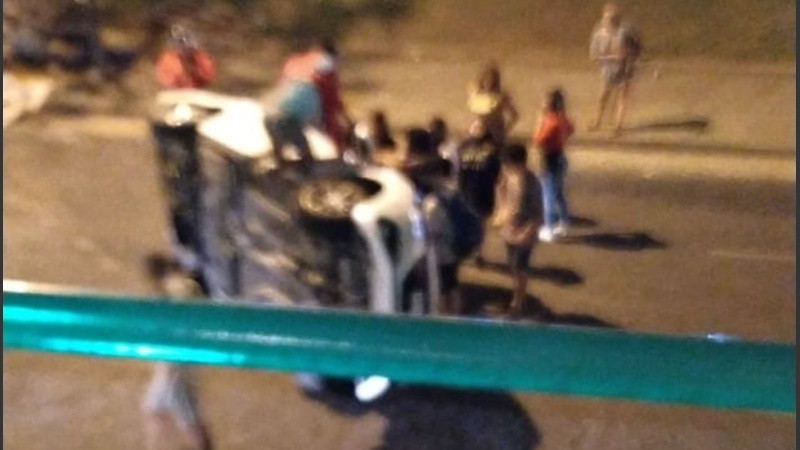 De acuerdo a las imágenes que llegaron a Radio 2 y Rosario3, un 208 blanco terminó volcado sobre su costado izquierdo este domingo cerca de la medianoche sobre avenida Wheelwright y Entre Ríos, a la altura del parque España, tras ser embestido por otro vehículo. La parte de atrás quedó bastante dañada.